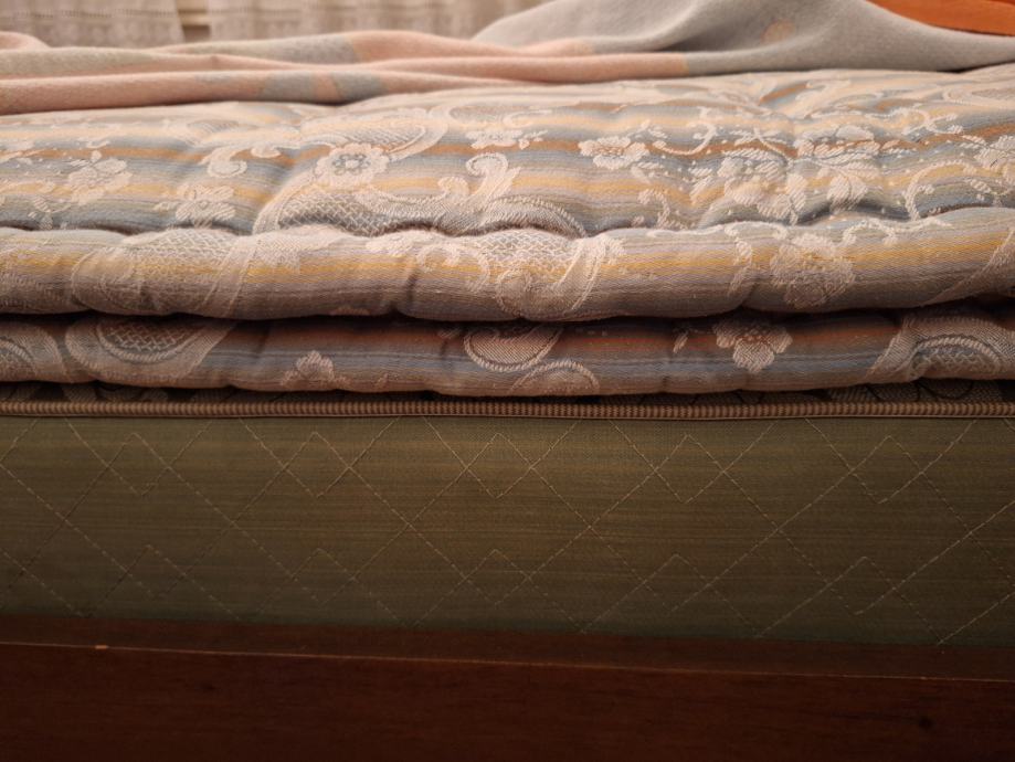 Zakonska postelja, dva jogija, dve blazini polnjeni z naravno volno. Mere širina 185, višina 61, (80 eur + 40 eur + 40 eur)