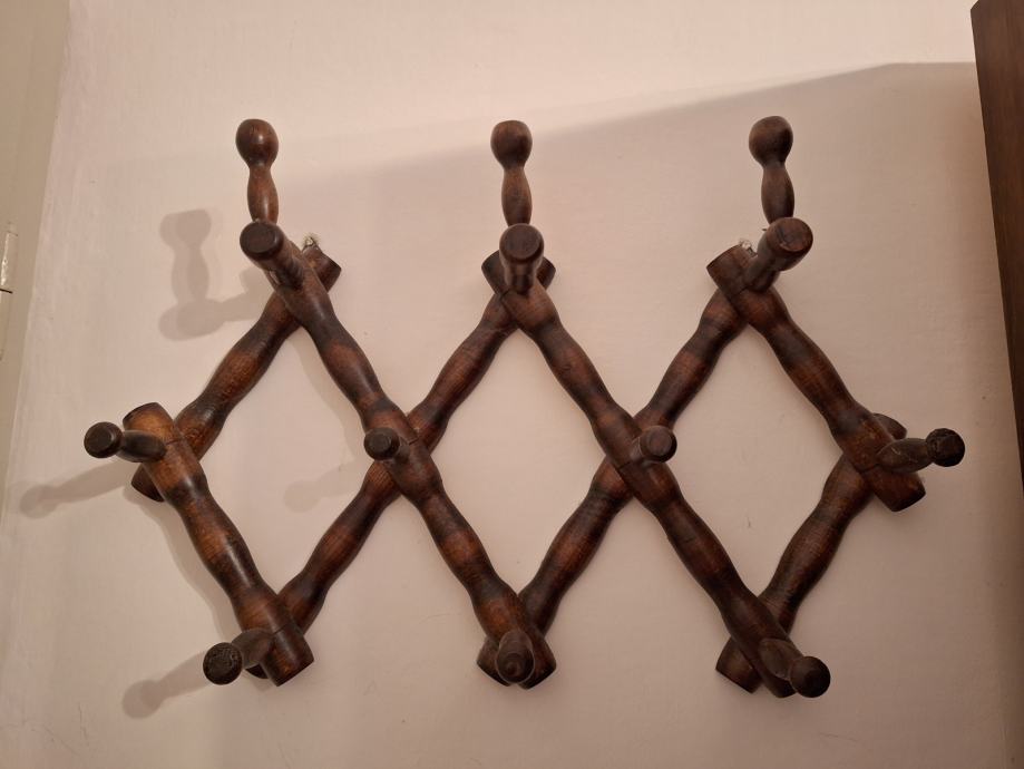 Obešalnik lesen, zložljiv, raztegneš na mero, 15 eur