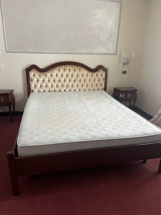 Spalnica, italijanski dizajn, postelja 214x180; 2 nočni omarici 33x50; predalnik 100x44; kozmetična miza 150x50; omara z drsnimi vrati z ogledalom 260vx280dx75g, zelo ohranjeno