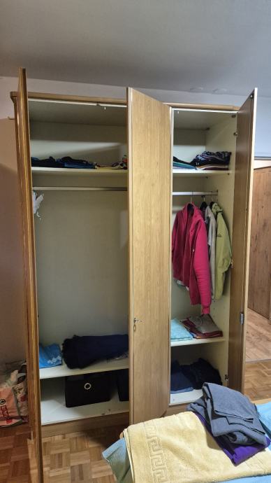 Prodam posteljo (širina 180cm) z jogijem in omaricami (širina celotnega kompleta 290cm ter omaro z obešalniki (širine 150cm).