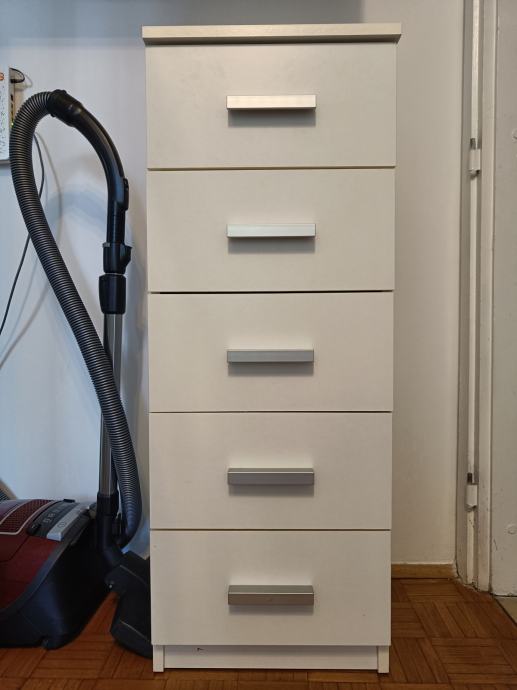 Prodam rabljen bel predalnik s petimi predali. Mere: Š41xV108xG35 cm