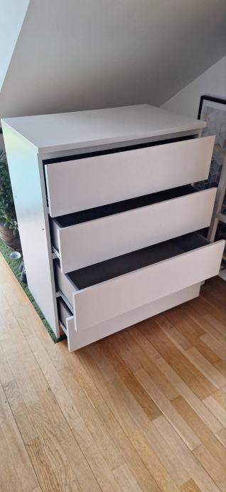 Prodam cca 4 leta srar predalnik ikea dim. Š 80, g 49 v 100 cm, klasicni bel, 4 predali. Spodnji predal se malo tezje zapira.