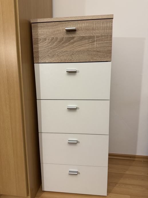 Prodajam zelo lepo ohranjem predalnik (Š40xV99xG35 - Jysk) s 5 predali dimenzij Š35xG30.