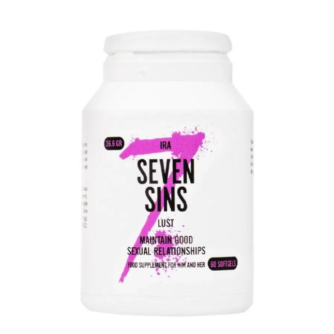 Ko želita oba – več poželenja, več bližine, več strasti Seven Sins Lust je naravni afrodiziak za pare, zasnovan za tiste, ki si želijo več energije, več želje in bolj povezan intimni odnos. S svojo edinstveno uniseks formulo z ginsengom in matičnim mlečkom (gelée royale) spodbuja libido pri obeh partnerjih ter pomaga pri ohranjanju zdrave in strastne spolnosti. Z redno uporabo izboljšuje dolgoročno spolno vitalnost in krepi spolno moč – nežno, a zanesljivo. Kaj ga dela tako posebnega? Afrodiziak za pare – za moške in ženske Naravna sestava z ginsengom in matičnim mlečkom Spodbuja libido in poveča spolno željo Namenjen redni, dolgoročni uporabi Preprosto za jemanje – 60 mehkih kapsul v enem pakiranju Idealen za vse, ki želijo dodati več strasti v spalnico Brez zapletenih priprav – diskretno in učinkovito Zakaj ga morate imeti? Seven Sins Lust je popolna izbira za pare, ki želijo okrepiti intimno povezanost in prebuditi tisto iskrico, ki v vsakodnevnem ritmu pogosto zbledi. Naravne sestavine delujejo sinergijsko, da spodbudijo spolno energijo pri obeh, ne glede na spol ali starost. Izdelek je enostaven za uporabo in primeren za dolgotrajno podporo vaši spolni moči. Če si želite več bližine, več užitka in več poželenja – skupaj –, potem je to afrodiziak, ki ga morate preizkusiti.V skladu z Uredbo (EU) št. 432/2012 o seznamu dovoljenih zdravstvenih trditvah o živilih, prehranskemu dopolnilu Seven Sins Lust ne smemo pripisovati zdravilnih učinkov. Predlagamo, da nas za več informacij o izdelku pokličete na brezplačno številko 080 12 99 vsak delovnik v času naših uradnih ur ali pa na 031 397 946, ali si preberete več o izdelku na tujih spletnih straneh. Afridiziak za pare, prehransko dopolnilo Vsebina: 60 kapsul, 36.6 g Navodila za uporabo: Zaužijte 2x dnevno 1 mehko kapsulo z zadostno količino vode. Ne vzemite več kot 2 mehki kapsuli na 24 ur. Najboljši učinek ima, če jo zaužijete ne povsem poln želodec. Rezultati se lahko razlikujejo za vsakega posameznika. Sestavine za 2 kapsuli: Ginseng Panax (166.66 mg, 27%-30% Ginsenosides, Sunflower Oil (464.8 mg), Lyophilzed Royal Jelly (140 mg, 3:1 Fresh), Yellow Beeswax (30 mg), Soybean Lecithin (20 mg). Pomožne sestavine: Gelatin, E171, E172, E420, E422. Alergeni: Soy. Opozorila: Hranite izven dosega otrok. Izdelek je namenjen polnoletnim osebam. Ne prekoračite priporočene dnevne količine! Hranite v temnem, hladnem in suhem prostoru, stran od direktne sončne svetlobe. Prehransko dopolnilo ni nadomestilo za uravnoteženo in raznovrstno prehrano. Priporoča se zdrav način življenja.