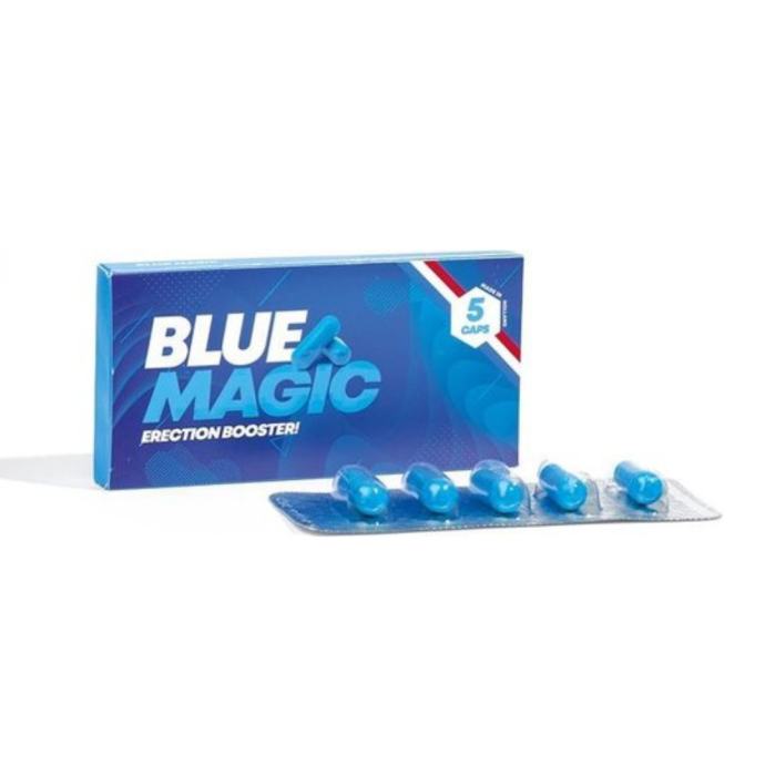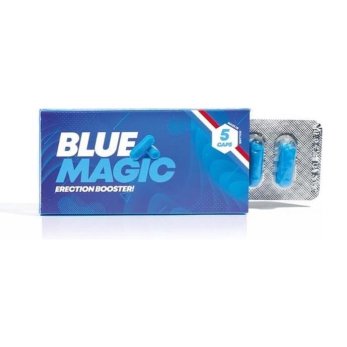 Pripravite se na modro čarovnijo! Zahvaljujoč močni zeliščni mešanici, je ta izdelek za erekcijo na voljo brez stranskih učinkov. S kapsulami Blue Magic boste uživali v bolj trdni in dolgotrajni erekciji za neomejene užitke med rjuhami. Kapsule Blue Magic so izdelane iz naravnih sestavin in so povsem varne za uporabo. Kapsule Blue Magic boste lahko vzeli priložnostno, cca 30 minut pred spolno aktivnostjo. Kapsule vplivajo na izboljšanje prekrvavitve penisa. Izboljšana prekvavitev pa vodi do bolj trdnih in dolgotrajnih erekcij. Izboljšana trdnost erekcije Naravni zeliščni izvlečki Primerno za vse polnoletne moške V skladu z Uredbo (EU) št. 432/2012 o seznamu dovoljenih zdravstvenih trditvah o živilih, prehranskemu dopolnilu Blue Magic ne smemo pripisovati zdravilnih učinkov. Predlagamo, da nas za več informacij o izdelku pokličete na brezplačno številko 080 12 99 vsak delovnik v času naših uradnih ur ali pa na 031 397 946, ali si preberete več o izdelku na tujih spletnih straneh. Tablete za moške, prehransko dopolnilo Vsebina: 5 kapsul, 310 mg Navodila za uporabo: Približno 30 minut pred spolno aktivnostjo vzemite 1 kapsulo z zadostno količino vode. Ne vzemite več kot 2 kapsuli na dan. Ne prekoračite priporočene dnevne količine! Sestavine: - Maca dry extract 60 mg (120 mg/dan) - Rhodiola 50 mg (100 mg/dan) - Ophiocordyceps Sinesis 25 mg (50 mg/dan) - Panax Ginseng 25 mg (50 mg/dan) - Cynomorium 25 mg (50 mg/dan) - Gentiana Macrophylla 25 mg (50 mg/dan) - Lonicera Japonica 25 mg (50 mg/dan) - Schisandra Chinensis 12,5 mg (25 mg/dan) - Eucommia 12,5 mg (25 mg/dan) - Fallopia multiflora 12,5 mg (25 mg/dan) - Cinnamomum cassia 12,5 mg (25 mg/dan) - Rehamannia glutinosa 12,5 mg (25 mg/dan) - Scrophularia 12,5 mg (25 mg/dan) - Ostale sestavine: Polnilo mcc, sredstvo proti strjevanju (magnesium stearate), Barvilo (Indigotine – FD&C Blue2 , Titanium dioxide) Opozorila: Hranite izven dosega otrok. Izdelek je namenjen polnoletnim osebam. Ne prekoračite priporočene dnevne količine! Hranite v hladnem in suhem prostoru, stran od direktne sončne svetlobe. Ne kombinirajte z alkoholom ali kofeinom. Prehransko dopolnilo ni nadomestilo za uravnoteženo in raznovrstno prehrano. Priporoča se zdrav način življenja.