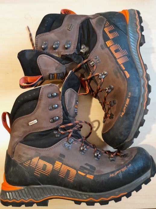 Prodam zimske pohodne čevlje Alpine Nuptse, št. 42, namenjene za pol-avtomatske dereze. Podplati so popolnoma novi, saj so na čevljih večino časa bile nameščene dereze, hoja je potekala samo po snegu.