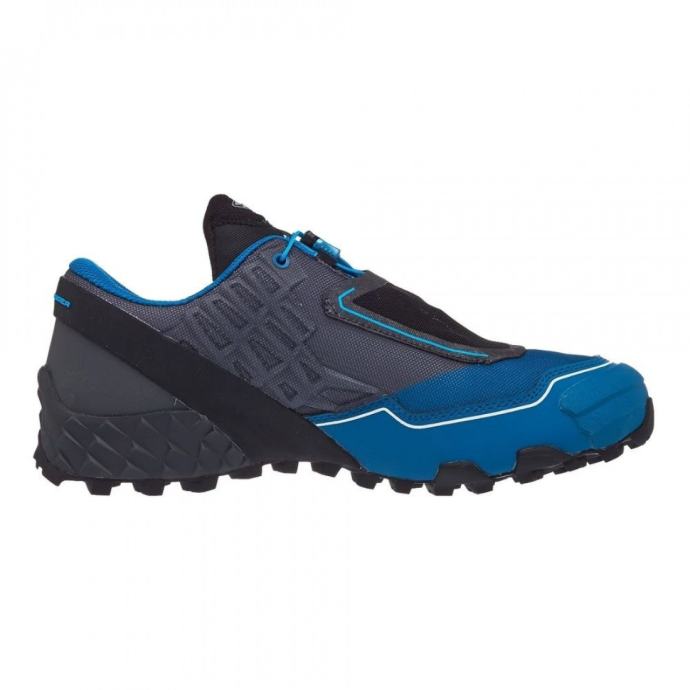 The waterproof Feline SL GTX running shoe for men guarantees optimum trail running traction and grip on soft and muddy surfaces. The shoe is a proven DYNAFIT bestseller and a true Swiss army knife on trails with its deep, aggressive tread. The Feline SL GTX is an impressive, versatile, sturdy companion that will keep you feeling totally great on soft surfaces as well as on mud and snow. Thanks to its GORE-TEX membrane, your feet remain durably dry all the time. In particularly suitable for middle distances, the Feline SL GTX scores big for its responsiveness, ideal traction, and well-balanced cushioning. The POMOCA outsole boasts a blend of lateral stability at the forefoot, excellent grip in the mid-foot area, and at the same time improved traction at the toes and heel - even on wet or slick surfaces. Its drop is 8 mm, guaranteeing good support and dynamic power. The Sensitive Fit of the shoe offers you a precise and comfortable fit as well as the largest possible range of natural movement. The Feline SL GTX’s Quick Lacing System is combined with the protection of the DYNAFIT Invisible Lacing Technology. With that you can on the one hand lace your shoe quickly and precisely. On the other hand, the protective stretch lace cover ensures that no rocks and dirt get into your shoe and that the laces remain safely stowed. Additional features of this trail running shoe include an injection-molded TPU toe cap to decrease the effect of impacts on the toes and forefoot. In addition, what DYNAFIT calls a “Heel Preloader” – a diagonal reinforcement at the heel – improves overall hold. Feline SL GTX – For your multisport adventures in any weather.