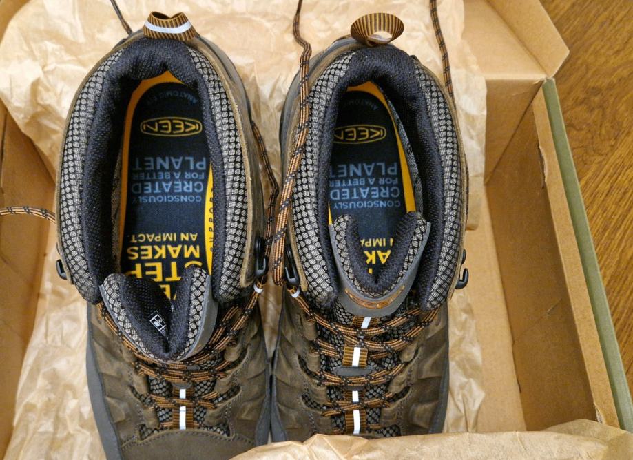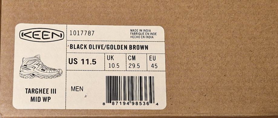 Novi moški pohodni čevlji Keen, model Targhee III Mid WP, črno olivna/zlato rjava barvna kombinacija, številka 45 (dolžina vložka od prstov do pete = 29 cm)
