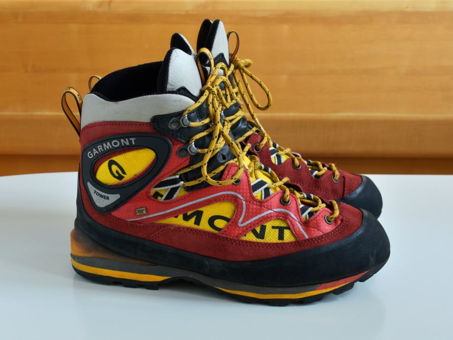 Prodam malo rabljene moške visoke pohodne čevlje (gojzarje) Garmont Tower GTX. Gore-Tex membrana, podplat Vibram. Primerno za tiste, ki sicer vsakodnevno nosijo čevlje št 42 ali 42,5.