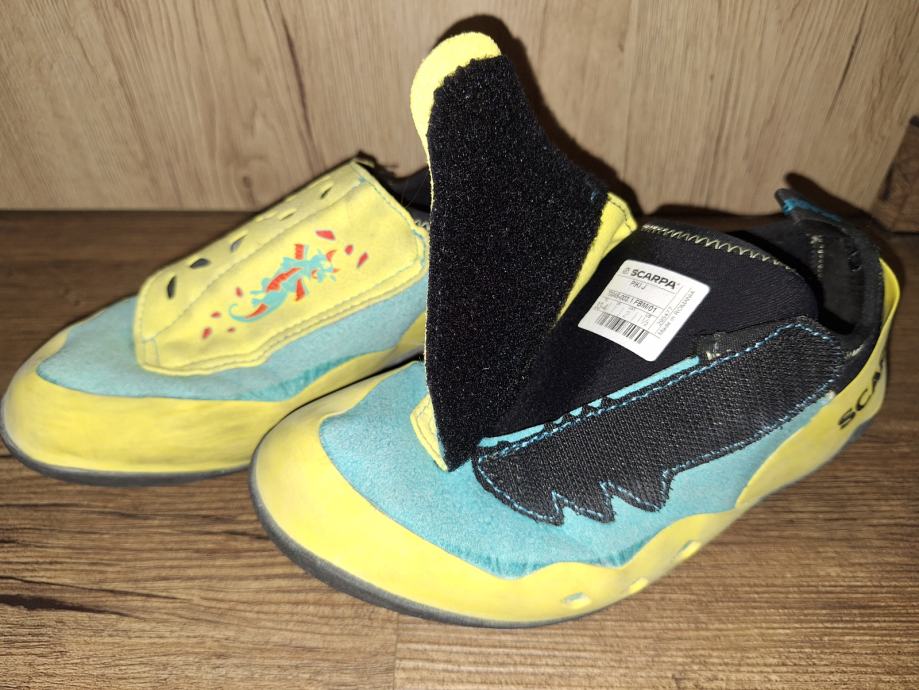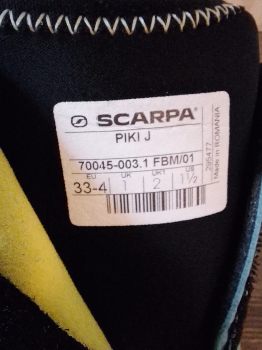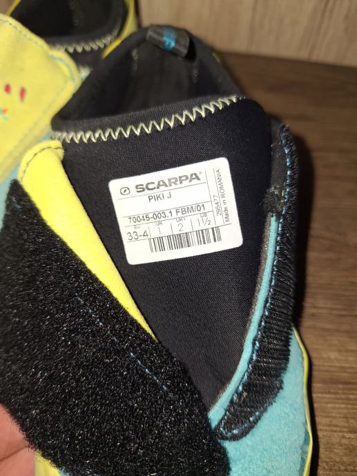 Prodamo otroške plezalne čevlje Scarpa Piki, št. 33-34, stare 2 leti, zelo malo uporabljane (samo dvorana), odlično ohranjene.