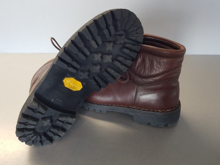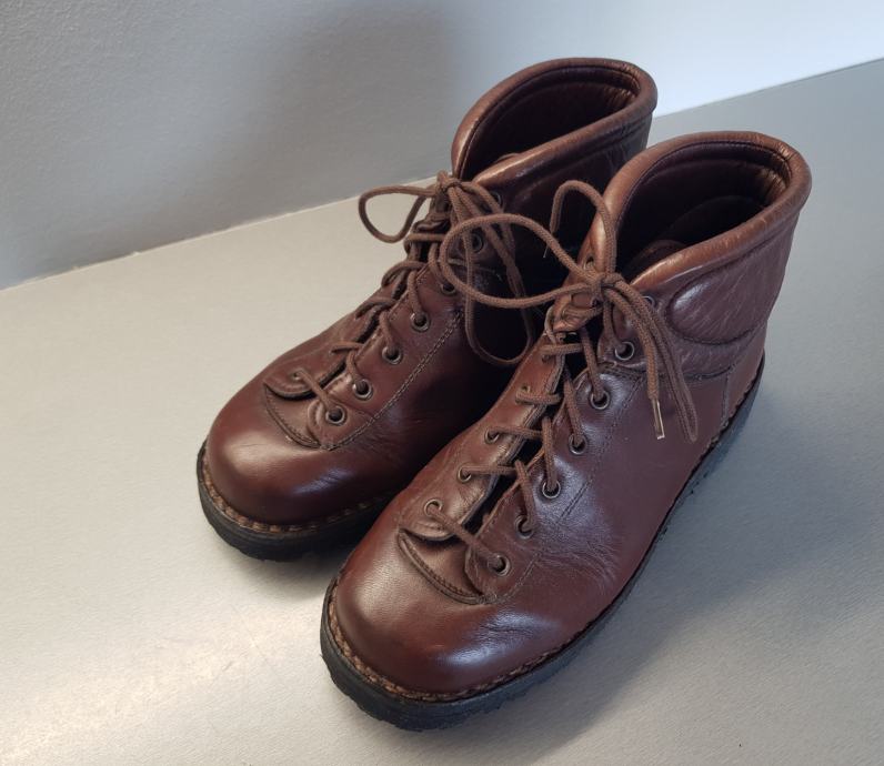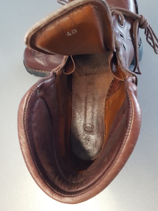 Zelo malo rabljeni, usnjeni gojzarji. Rjavi, št. 40. Poreklo Italija, leto izdelave cca v 70ih. Unikaten, retro dizajn. Privlačni v urbanem okolju, zmogljivi pri drznejših pohodniških podvigih. Čevlji so redno negovani (usnje mazano z impregnacijsko mastjo). Nov Vibram podplat. Vreden in trajnosten nakup.