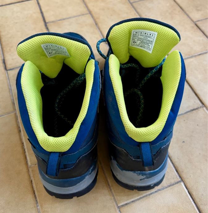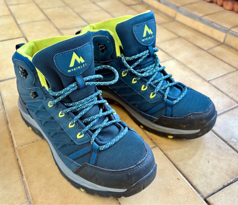Prodam odlično ohranjene pohodniške čevlje znamke McKinley številka 39 v modro-rumeni kombinaciji. Čevlji so visoki, idealni za pohodništvo. Imajo vodoodbojno membrano Aquamax.