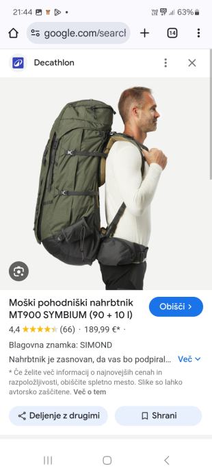 Prodam dobro ohranjen nahrbtnik, prostornine 100 litrov, kupljen v decathlonu