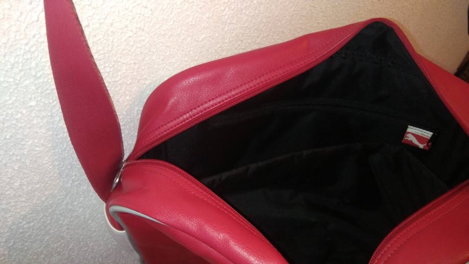 Prodam odlično ohranjeno torbo znamke PUMA. Notranjost spominja na računalniško torbo, mogoče je namenjena za šport. Notranja velikost je 35x26x9 cm. Notranja in zunanja zadrga sta delujoči.