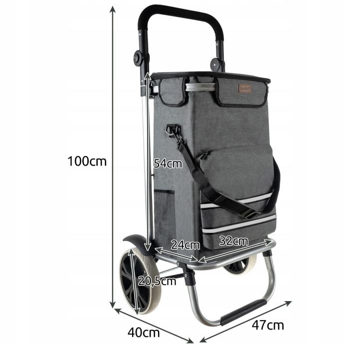 ENOSTAVNOST PREVOZA – zahvaljujoč kolesom lahko enostavno prevažate težke nakupe, ne da bi jih morali nositi na rami ali v roki, zaradi česar je naš nakupovalni voziček nenadomestljiv pripomoček v vsakdanjem življenju. Zanesljiv, vzdržljiv in praktičen. Nakupovalni voziček je idealna rešitev za ljudi, ki cenijo udobje in funkcionalnost pri vsakodnevnem nakupovanju.