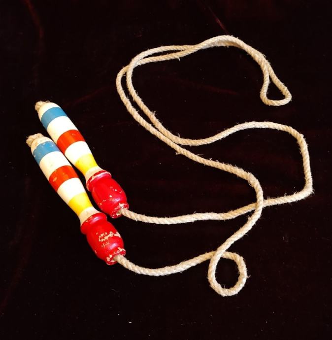 OTROŠKA KOLEBNICA "PIKA NOGAVIČKA" S PISANIMA LESENIMA DRŽALOMA.