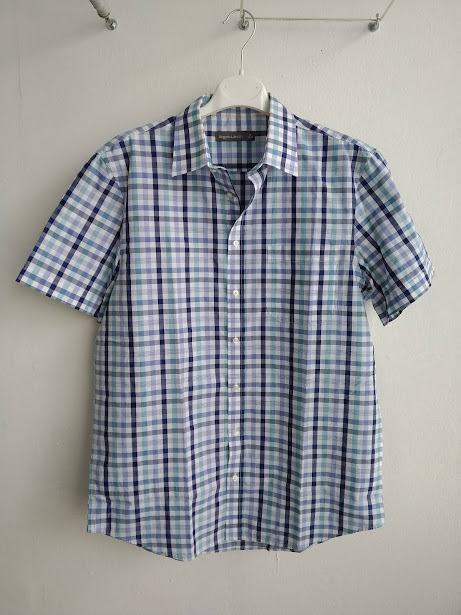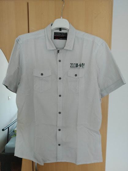3. Bela srajca - droben karo; velikost L; cena 5€