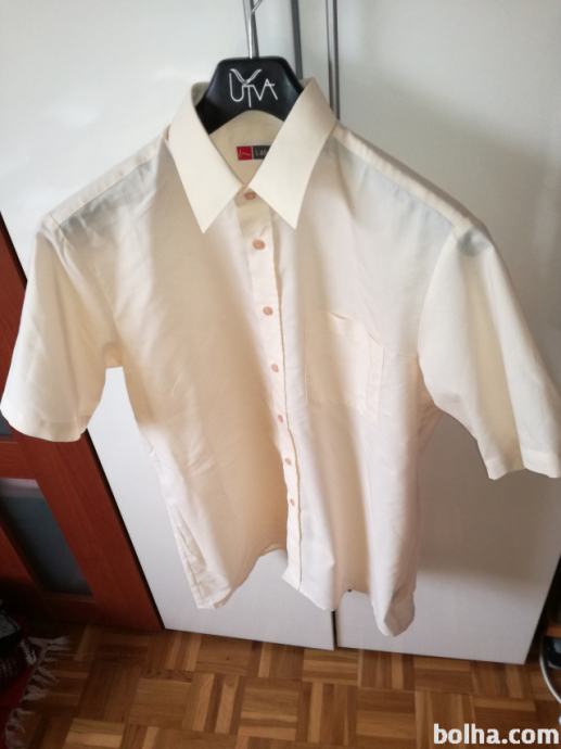 NE MENJAM! POŠTNINA VŠTETA V CENO! Prodam le par krat nošeno, zato brezhibno ohranjeno, kot novo moško srajco s kratkimi rokavi rumenkasto bež barve, znamke Labod, velikost 39, z 1 žepom,raven kroj, sestava 73% bombaž, 27% poliester.