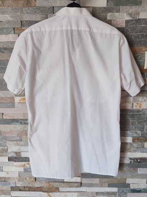 Moška ali fantovska srajca s kratkimi rokavi v beli barvi, znamke Labod. Velikost 38, dolžina 74 cm, širina 50 cm dolžina rokava 24 cm. Material 60% bombaž, 40 % poliester.
