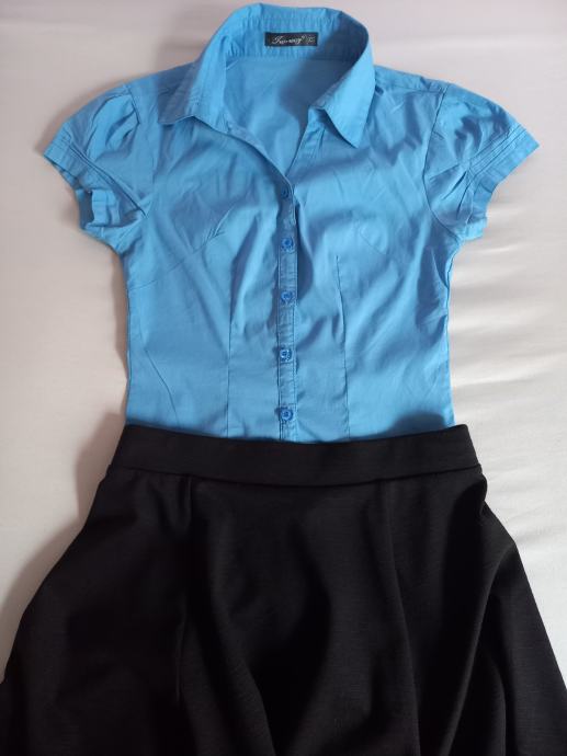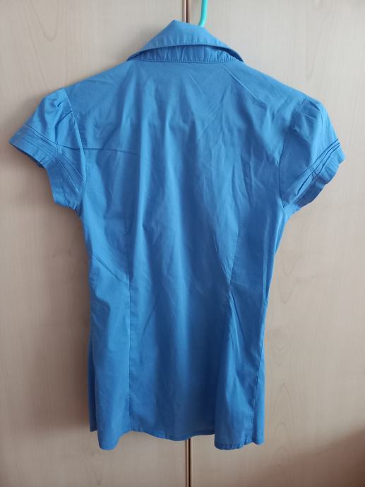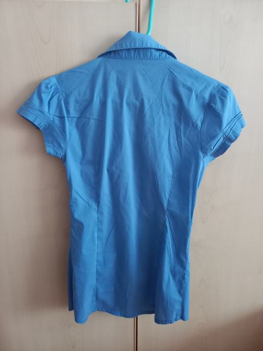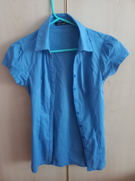 Prodam nenošeno modro srajco s kratkimi rokavi, velikost XS, raztegljiva, oprijeta.