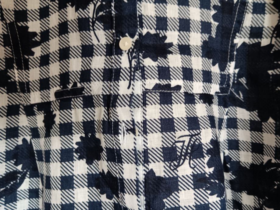 material lan, modro bele barve z vzorcem, nikoli nošena,