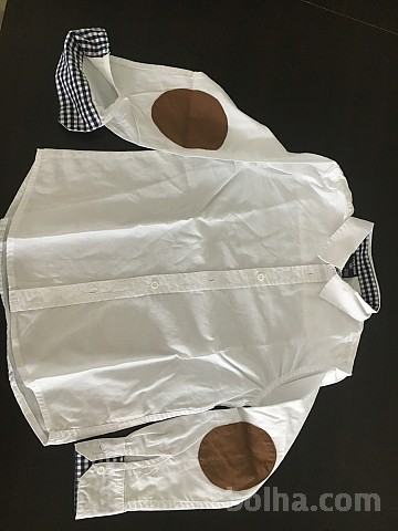 Prodam NIKOLI NOŠENO , belo moderno srajčko s kockastim midnim vzorcem v notranjosti rokavov in ovratniku , er našitkom na komolcih.