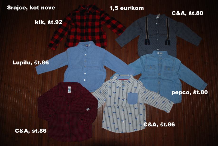 Srajce, H&M, NKD; Takko. Zelo lepo ohranjene, 1-2x nošene. Cena 1,5 eur/kom. Prevzem v Mb ali po pošti.
