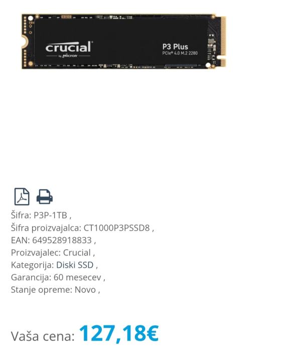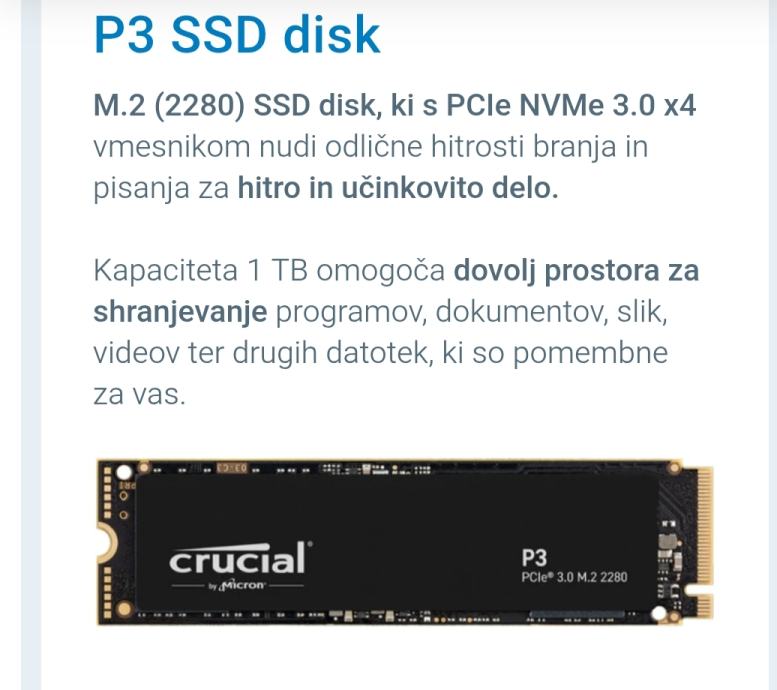 Prodam M2 disk 1Tb Crusial p3 plus še nikoli vgrajen. Kot nov