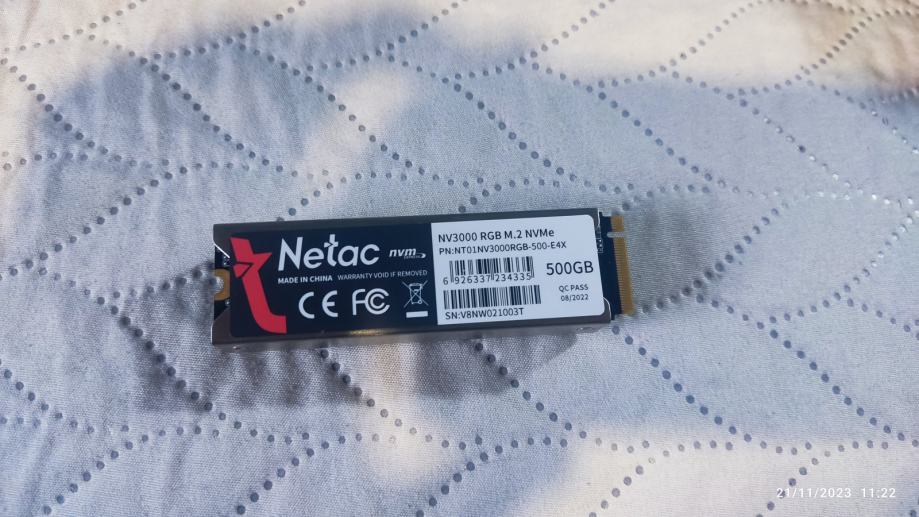 SSD disk 500GB M.2 NVMe Netac NV3000 RGB, Heatsink, rabljn 11 mesecev