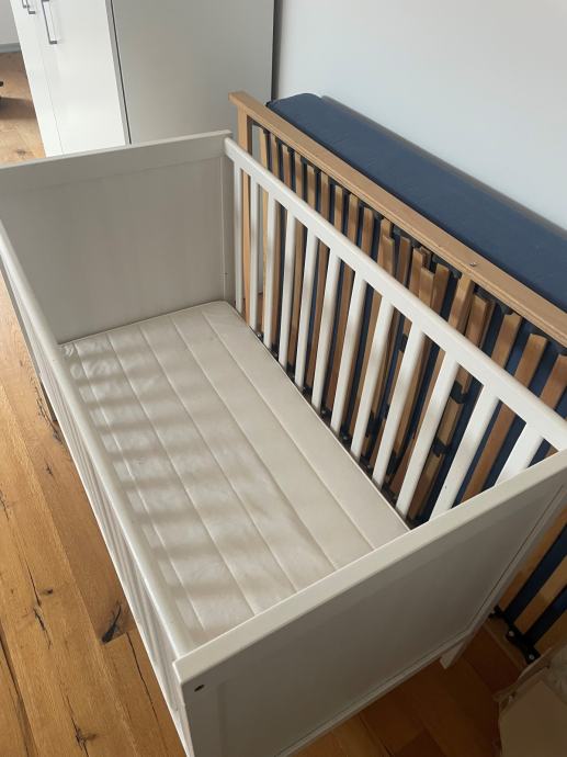 Otroška posteljica velikosti 125x65cm z ležiščem, odlično ohranjeno, praktično nerabljeno.