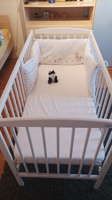 - otroško posteljico, mere ležišča 120x60 cm, višina 85 cm, ležišče z 2. nastavljivima višinama), posteljici pripada še posteljnina, ležišče in odejica 40 EUR