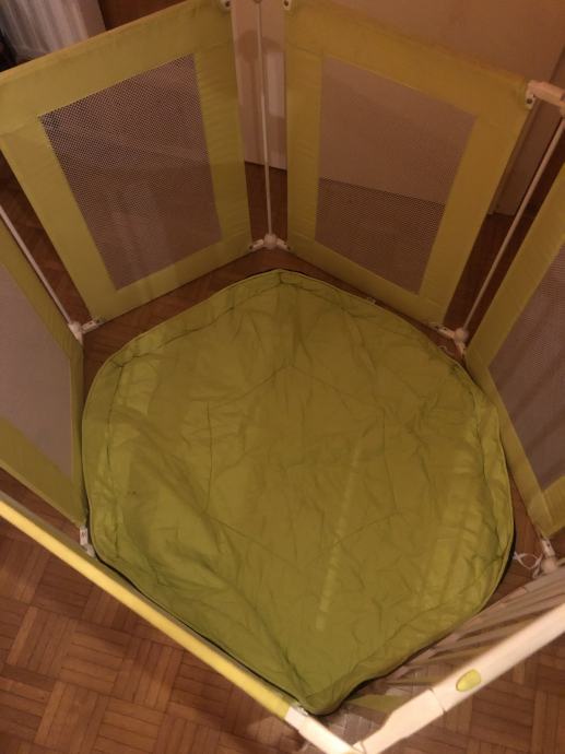 Lahko se uporabi tudi kot pregrada prostora ali zaščita, ko se zloži. Zelo praktična. Na tla se postavi originalna podlaga, kot vidite na sliki.