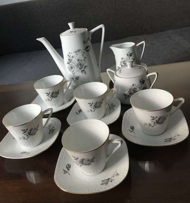 Prodam starinski porcelanast čajni servis Wawel Poljska. Vsi kosi so okrašeni s poslikavo črne vrtnice.