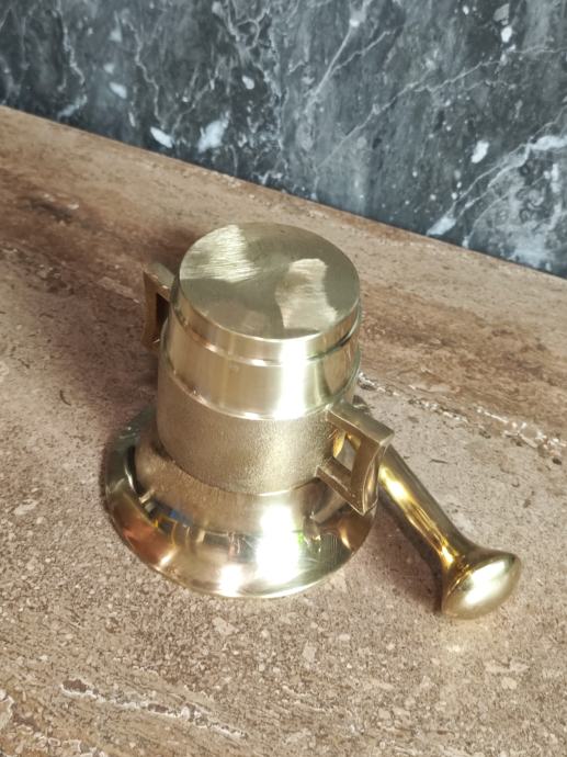 Prodam lepo ohranjen, nepoškodovan možnar višina 12 cm, zunanji premer ustja 12 cm, z betom dolžine 20 cm. Izdelan okoli leta 1996. Medenina.