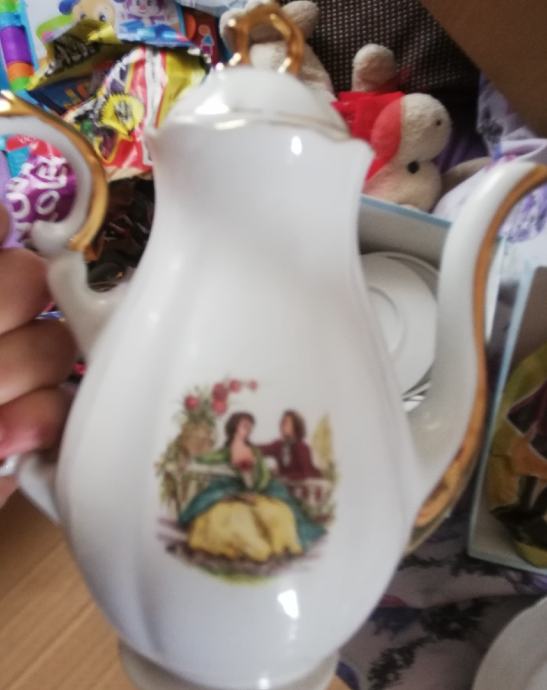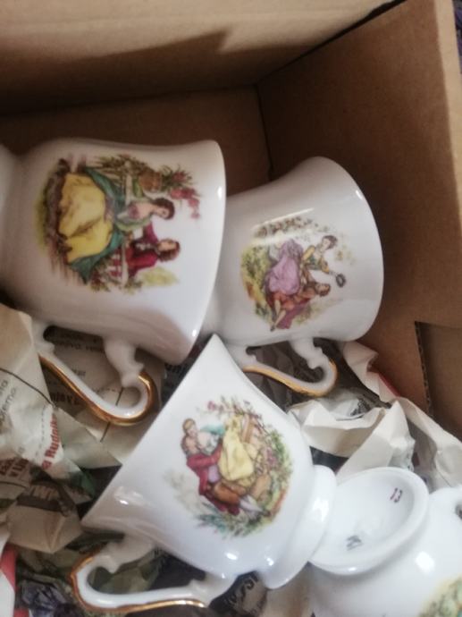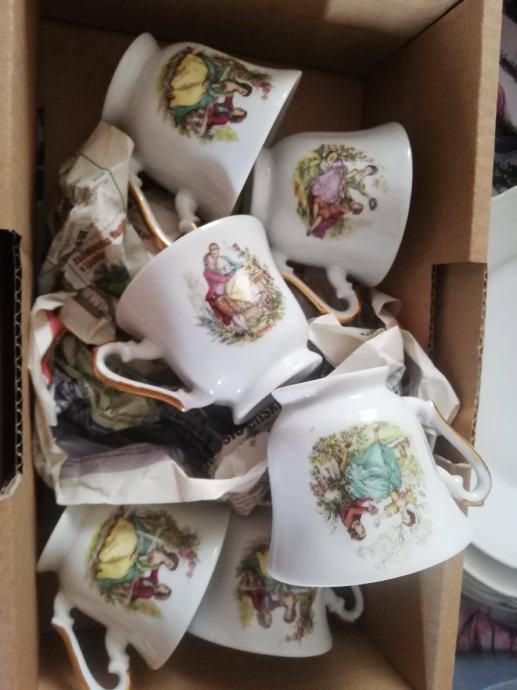 Prodam vintage porcelanast servis Zajecar, sestavljen iz čajnika, sladkornice, posode za mleko in 6 šalic s krožniki Romeo in Julija (nikoli uporabljen) Cena 80 eur