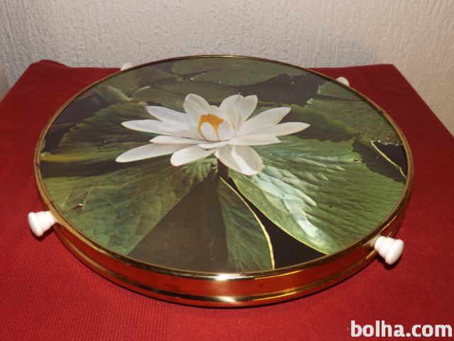 Prodaja se retro kovinska servirna tasa, možnost vrtenja na mizi, lepa poslikava, premera 30cm.
