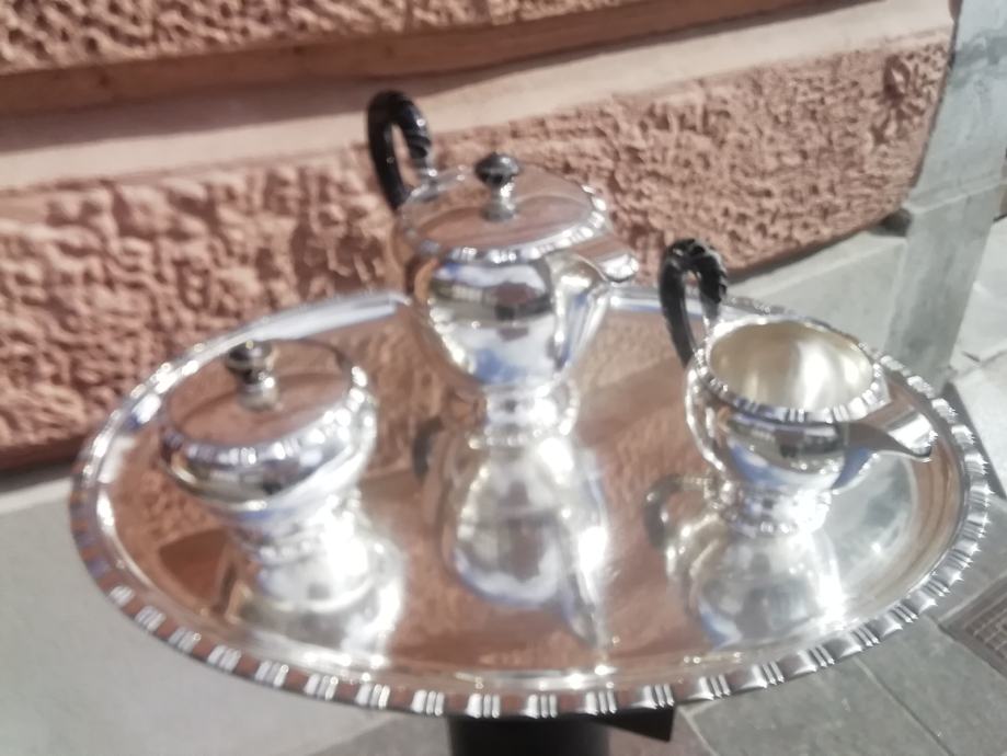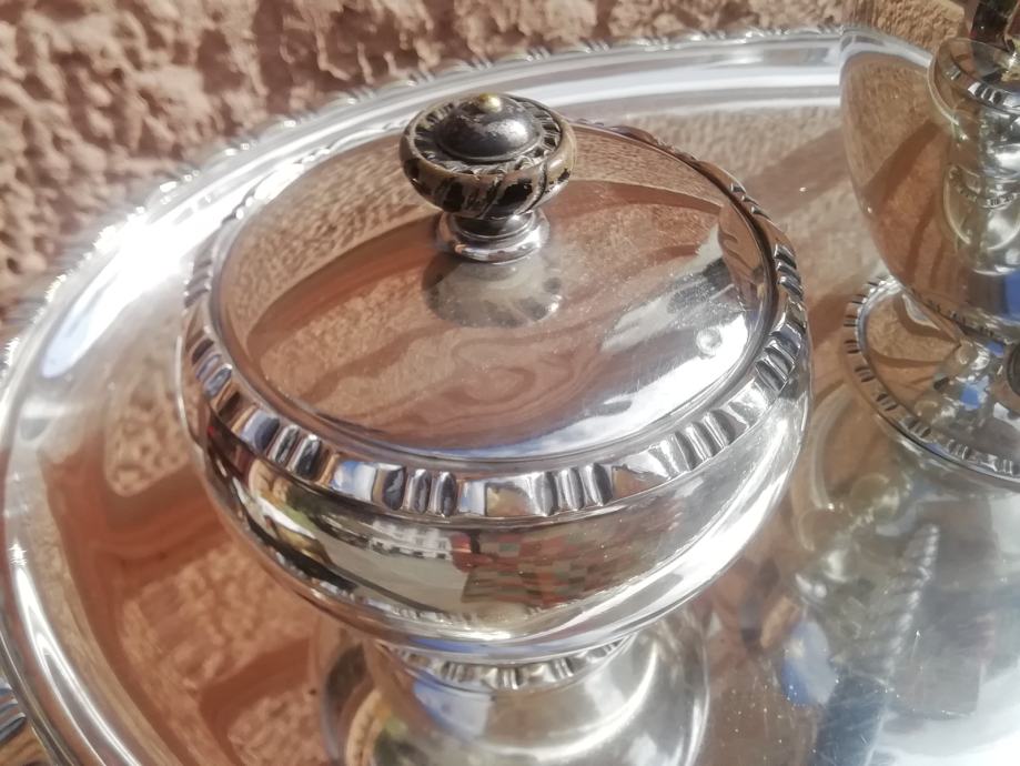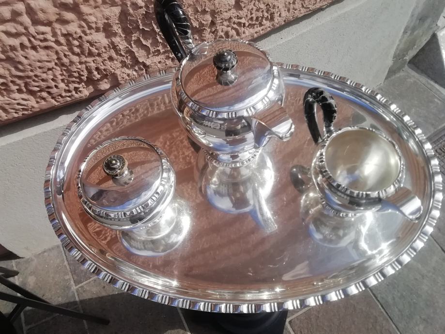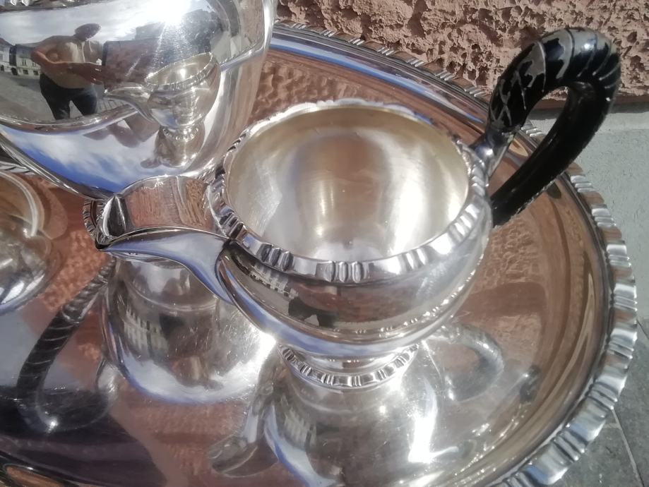 SERVIS ZA ČAJ, star, posrebren, vrc, dozi za mleko in sladkor, ovalni pladenj, očiščeno, ohranjeno, prodam. Tel. 070/271-607.
