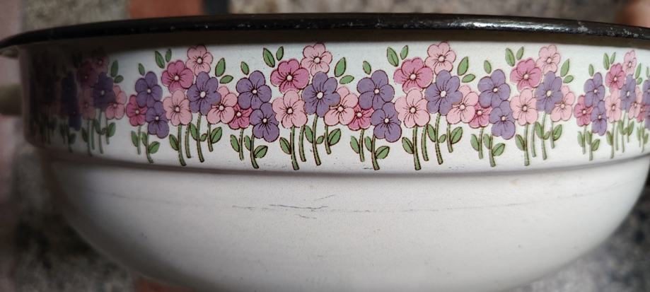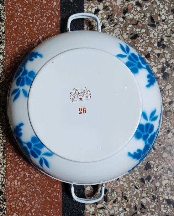 ŠTIRI EMAJLIRANE KMEČKE SKLEDE, Z RAZLIČNIMI MOTIVI, EMO CELJE 26 cm,