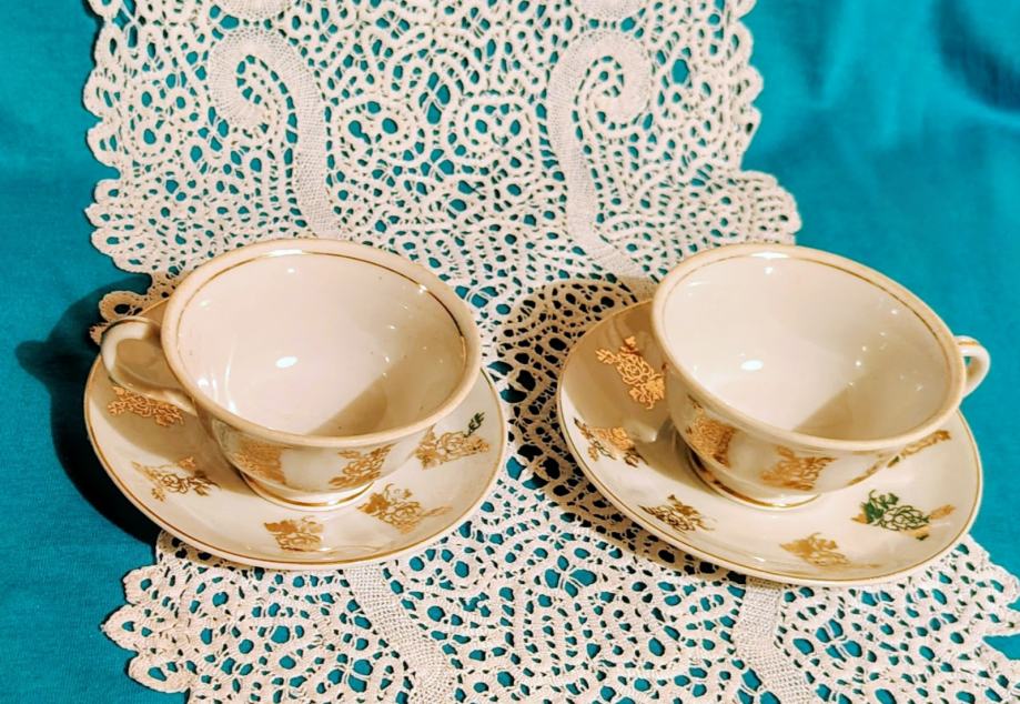 DVE VINTAGE SKODELICI S KROŽNIČKI ZA KAVO,