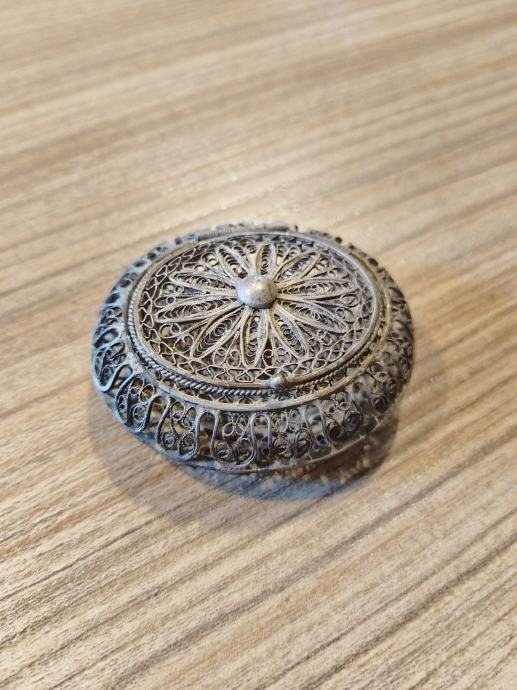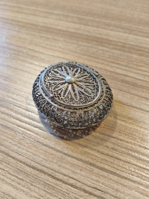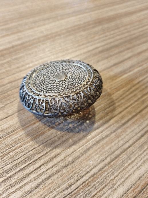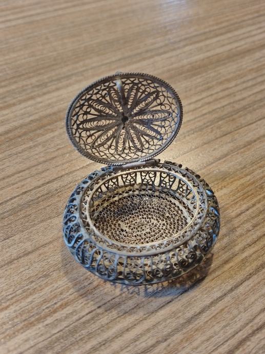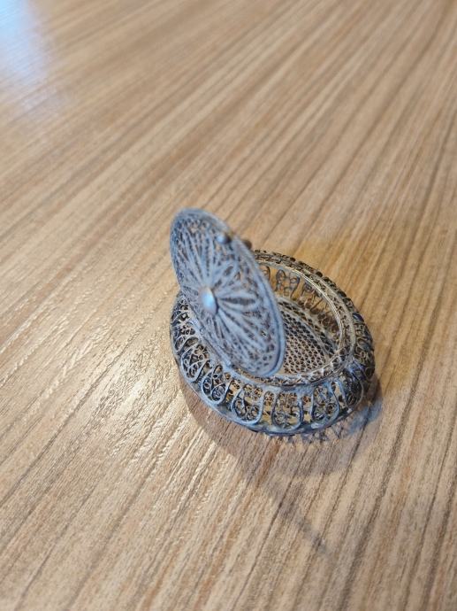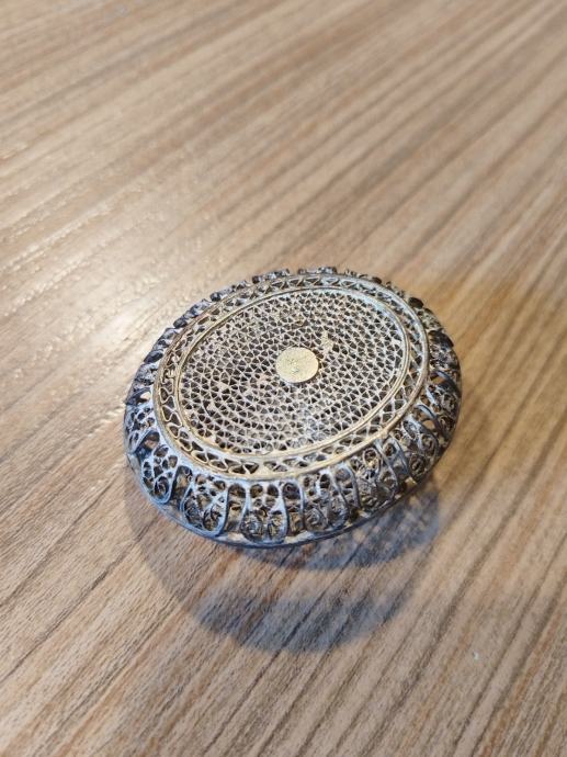 Srebrna ovalna škatlica izdelana v tehniki Filigran legure 800/1000