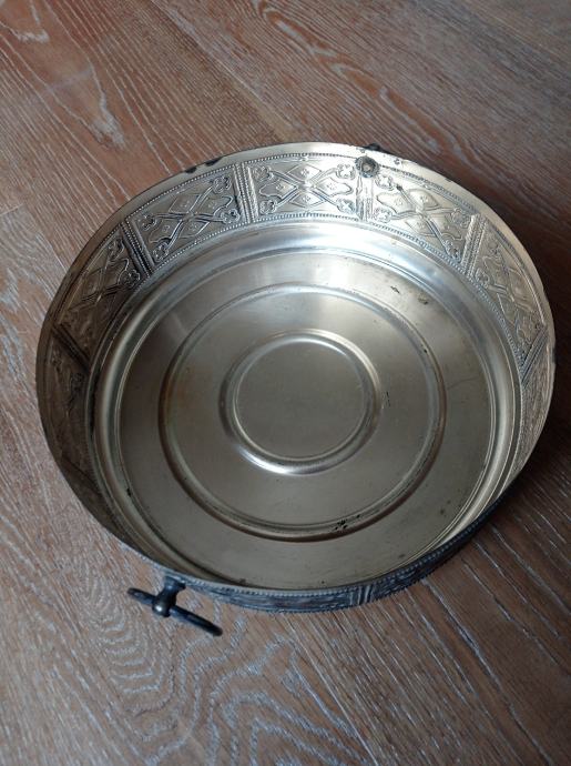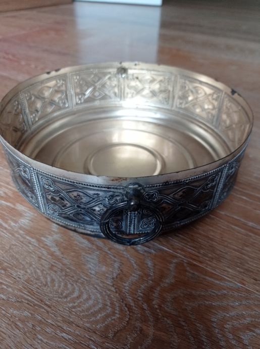 Prodam staro posodo okoli 1910, posrebreno posodo premer 21,5 cm, višina 8 cm.