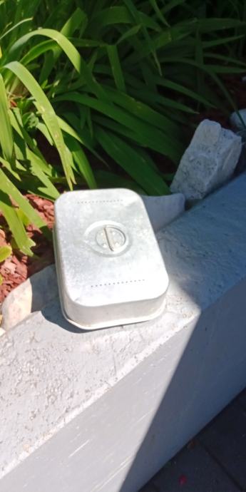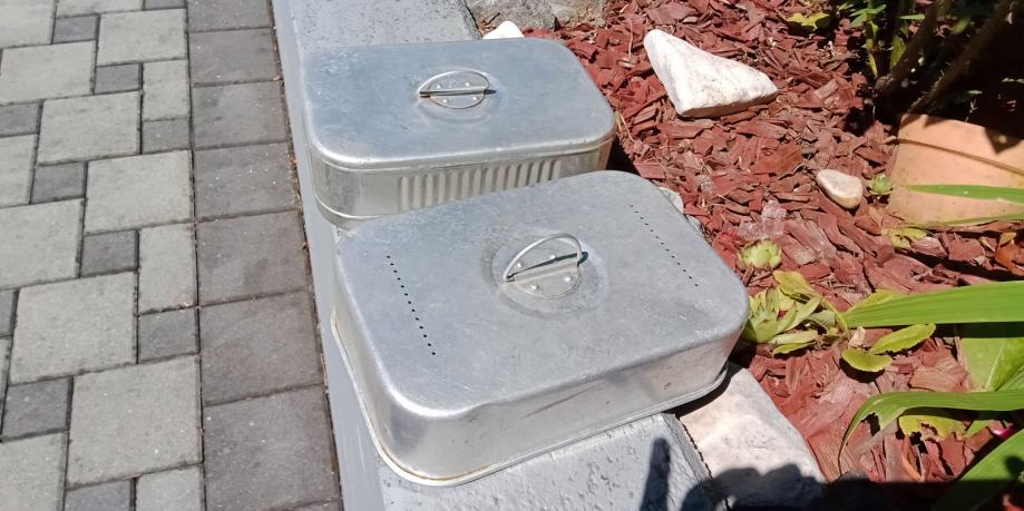 AluminIjska škatla za hribe za shranjevanje hrane. Ima tudi zračnike na pokrovu. Izmere 29 x 19 x 8 cm. Cena 10 €.