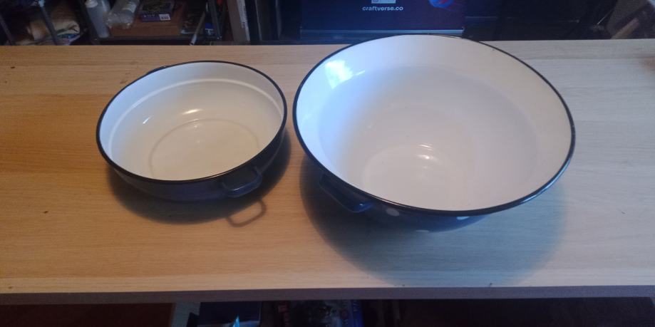 EMAJLIRANA SKLEDA ZA MESENJE TESTA (ZVONEC) V MODRUI BARVI, VEČJO SKLEDO ZA SOTALO IN VEČJI LONEC. CENA 15 €/KOM.