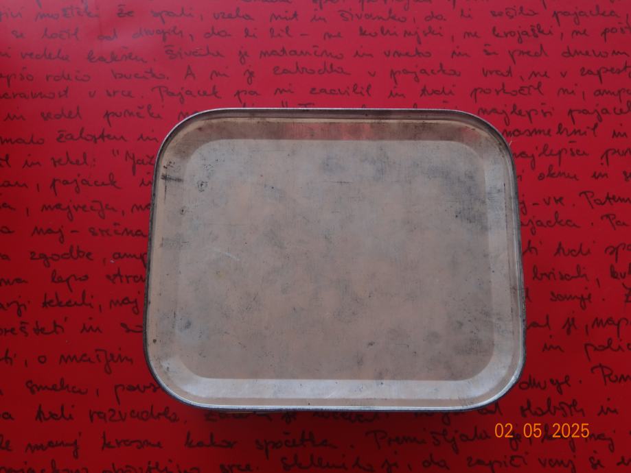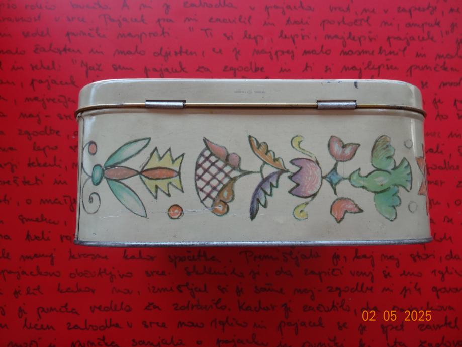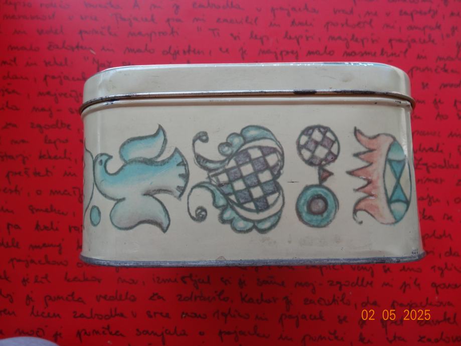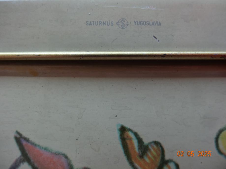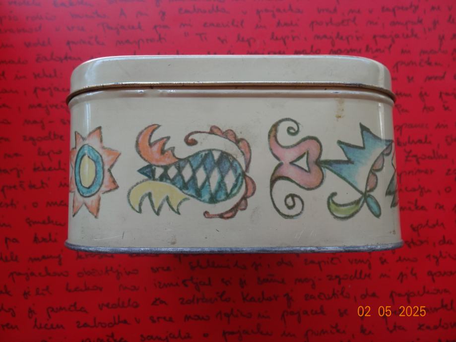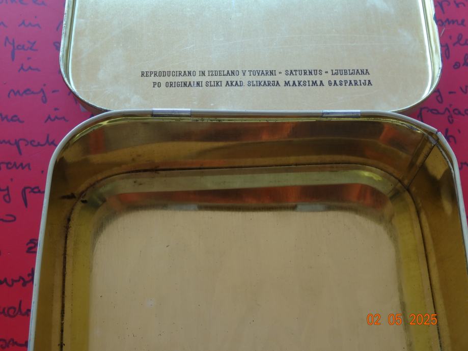 Dobro ohranjena kovinska škatla Saturnus Jugoslavia. iz 60let z ilustracijo Maksim Gasparija.