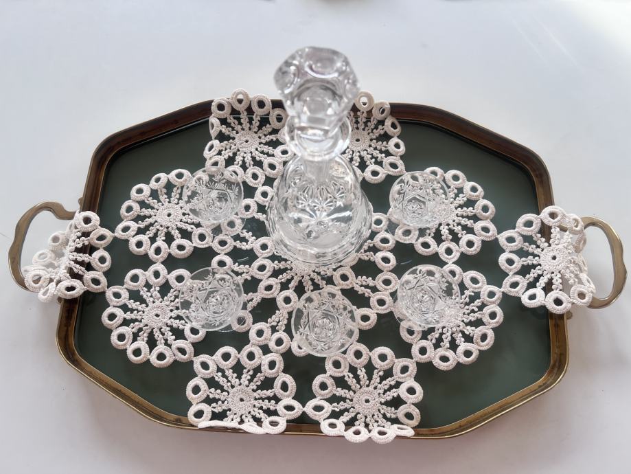 Je kakovostno izdelan, težji in stabilen-primeren tako za serviranje kot za dekoracijo. Odličen kot podstavek za sveče, parfume ali pijačo, pa tudi kot vintage dodatek za dnevno sobo, jedilnico ali kopalnico.