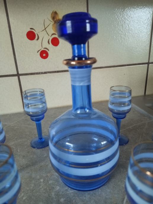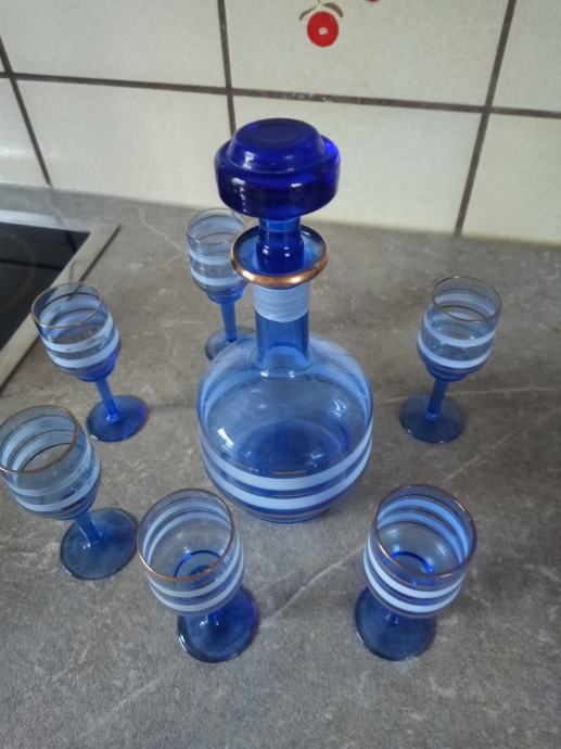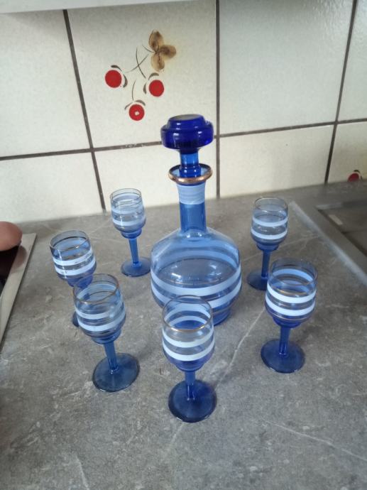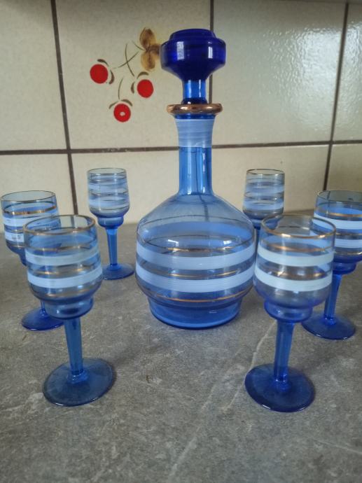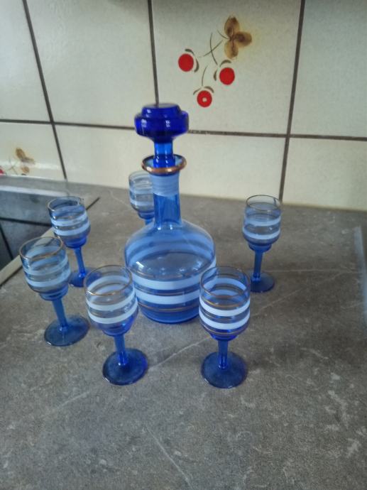 Steklenica z 6 kozarci za aperitiv Nerabljen staro 50 let lep dizajn