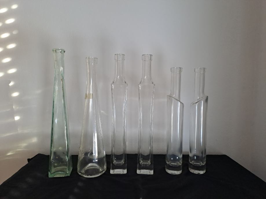 Prodamo stare, nerabljene steklenice zanimive oblike za sladke pijače. Primerne za poslikavo.