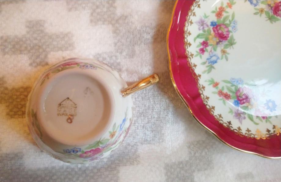 Vintage porcelan kavna čajna skodelica, podstavek CMIELOW Poland retro