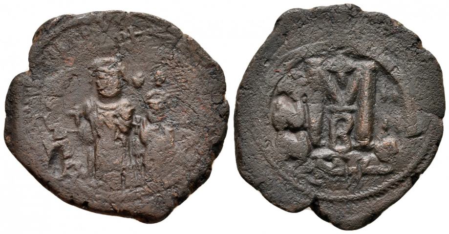 Velik follis ali 40 nummi cesarja Heracliusa s sinom Heracliusom Constantinom, 610-641, 33 mm, 10,87 g težak bronasti novec v zelo dobri kvaliteti