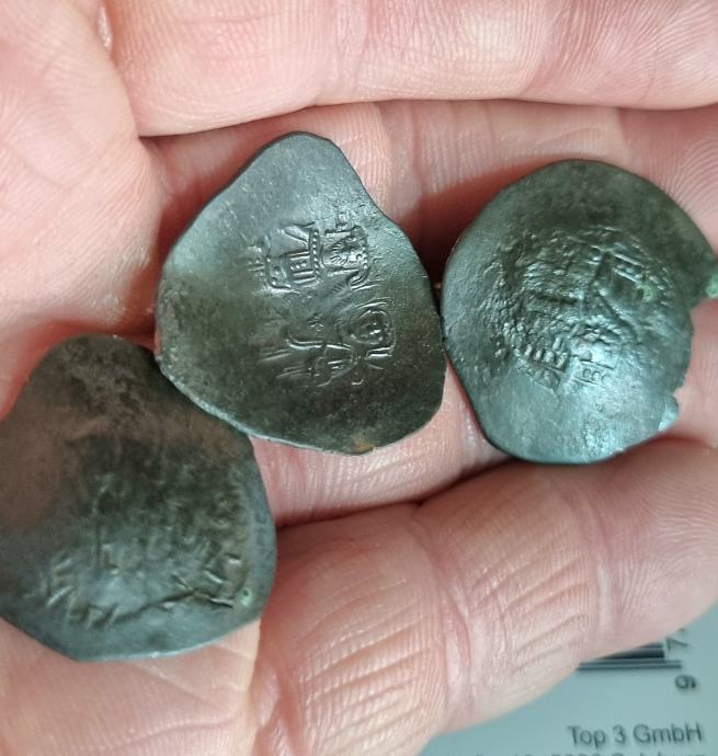 Kovani med leti1143-1180, po vzoru katerih je koval svoje novce tudi Ogrski kralj Bela III, trije različmi novci, možen tudi posamezen nakup po 15 €/kos